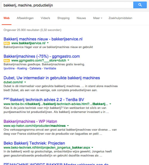 Stel ik heb een broodfabriek en ik wil innoveren en een nieuw brood op de markt brengen. Ik zoek daarvoor een uitbreiding van mijn productie. Ik pak mijn smartphone en start Google op: bakkerij, machine, productielijn: