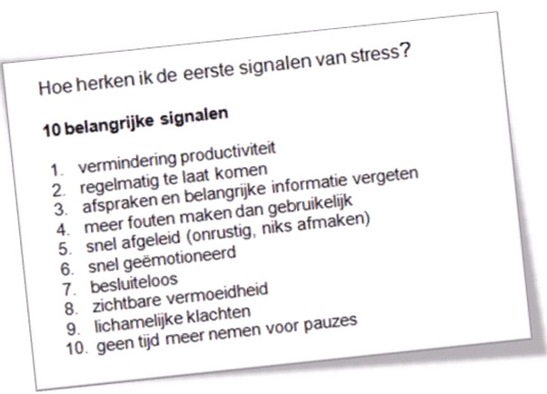 - Veel medewerkers hebben last van stress en dat kan leiden tot vaak langdurig verzuim. Ook leidt dat tot een lagere productiviteit. Deze stress hoeft niet altijd werkgerelateerd te zijn maar kan ook met de privé situatie te maken hebben. Veel medewerkers zijn ook mantelzorgers en dat kan een grote last zijn. Duidelijkheid, communicatie, oog voor elkaar hebben, taakverantwoordelijkheid e.d. zijn bouwstenen waar de organisatie ‘winst’ kan behalen.