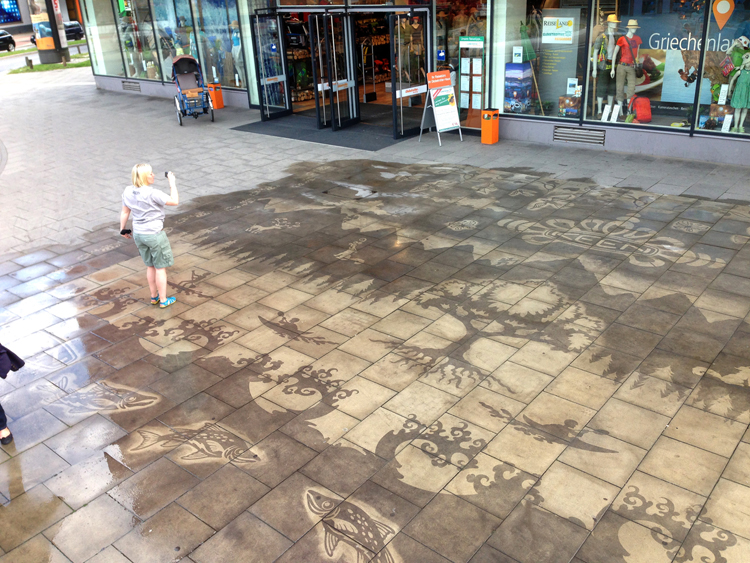 Nol Gerritse, head of marketing for KEEN Europe, worked with GreenGraffiti® to produce a 130 square meter sidewalk mural in front of two GlobeTrotter stores n Germany. They also captured the execution on video and took tons of photos during the four hours it took to produce the sidewalk mural. Hundreds of passersby stopped to watch as the artwork emerged from the dirt, taking their own photos and videos to share on social media. The local and national press also picked up the story, exponentially expanding the reach of KEEN’s campaign. An investment of less than 20,000 euros resulted in what KEEN called their “best outdoor promotional campaign of 2013.”