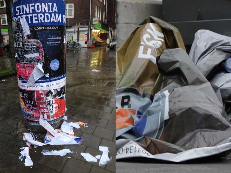 Each week in Western Europe, outdoor advertising consumes 3 million square meters of paper. A year’s worth of these outdoor ads equals a one meter wide piece of paper that would wrap around the planet 3.9 times. This doesn’t even include billboards printed on vinyl using aggressive solvent-based inks or the new plastic pvc films being used in place of paper because the new LEDs don’t push enough light through the paper to make them look colourful and bright.
