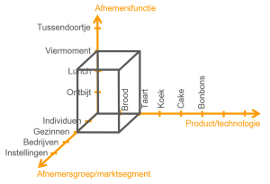 Het Abell-model van Derek Abell bestaat uit drie 'armen'. Per arm inventariseer je de behoeften, afnemers en producten/technologieën die relevant zijn in jouw bedrijf. Je kunt dit model op twee manieren inzetten: