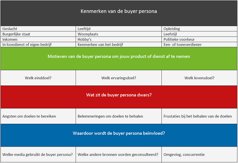 De kenmerken van een typische klant kun je als volgt overzichtelijk vastleggen: