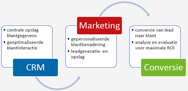 Ook stelt CRM het bedrijf in staat om leads uit allerlei verschillende activiteiten handmatig of automatisch te "voeden" met leads. Denk aan content marketing, conferenties en beurzen, e-mailcampagnes, webinars en formulieren op de website. Via het systeem organiseer je daarna de taakverdeling zodanig dat geen lead meer verloren gaat.
