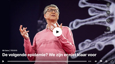 In 2015 gaf Bill Gates aan dat er dreiging is van een groot aantal doden, niet als gevolg van een oorlog, maar door een besmettelijk virus (voer voor complotdenkers?)