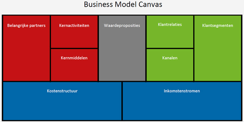 Die waardepropositie kan dan vervolgens weer verwerkt worden in een breder overzicht, het Business Model Canvas: