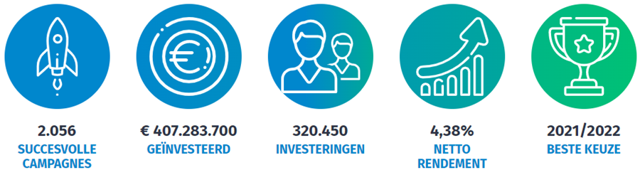 Gunstige reviews zijn natuurlijk een andere belangrijke indicatie. Wat hebben de gebruikers van het platform te zeggen over hun ervaringen en hoe lang zeggen zij dat al. Ruim een jaar geleden hebben wij als eerste en grootste platform in Nederland ons 10-jarig jubileum gevierd. Bovendien hebben wij vorige maand de grens van € 400 miljoen aan opgehaalde financieringen overschreden. Hierdoor krijg je inzicht in de betrouwbaarheid en duurzaamheid van het platform. Zie hieronder hoeveel projecten er met succes gefinancierd zijn: