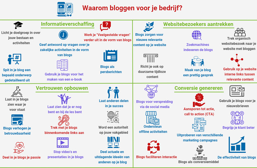 Zakelijk bloggen kan in veel situaties zinvol zijn, vooral als onderdeel van een algehele contentmarketingstrategie. Hier zijn de 4 hoofdredenen die zakelijk bloggen zinvol maken: