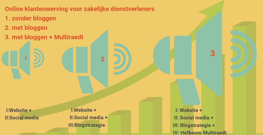 Zakelijke dienstverleners, die content marketing gebruiken voor hun klantwerving, hebben behoefte aan een zo'n groot mogelijk toegang tot hun doelgroepen. Multiraedt zorgt daarvoor op twee manieren: